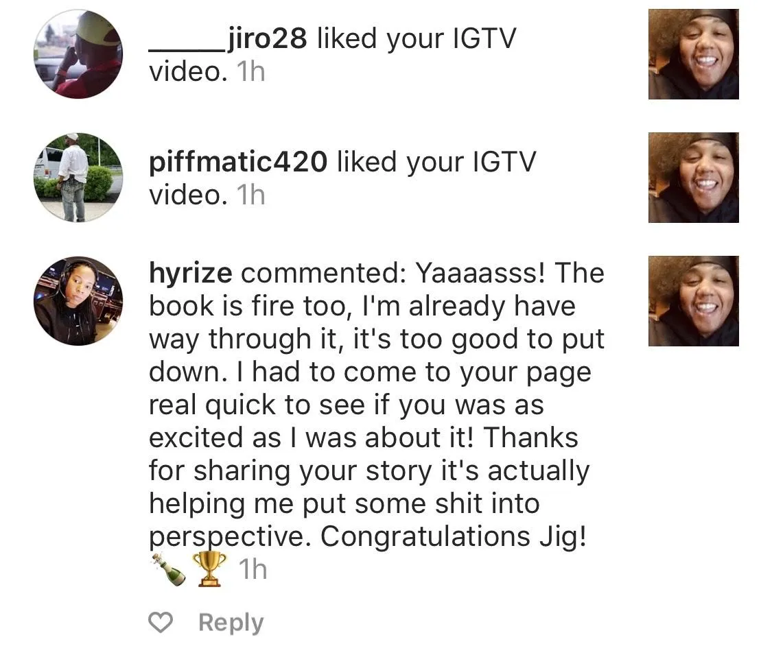 “Maybe you see yourself in me—or maybe you realize we both have or have had some of the same tribulations. This is the read that’s going to answer a lot of your unknowns.” -Jig